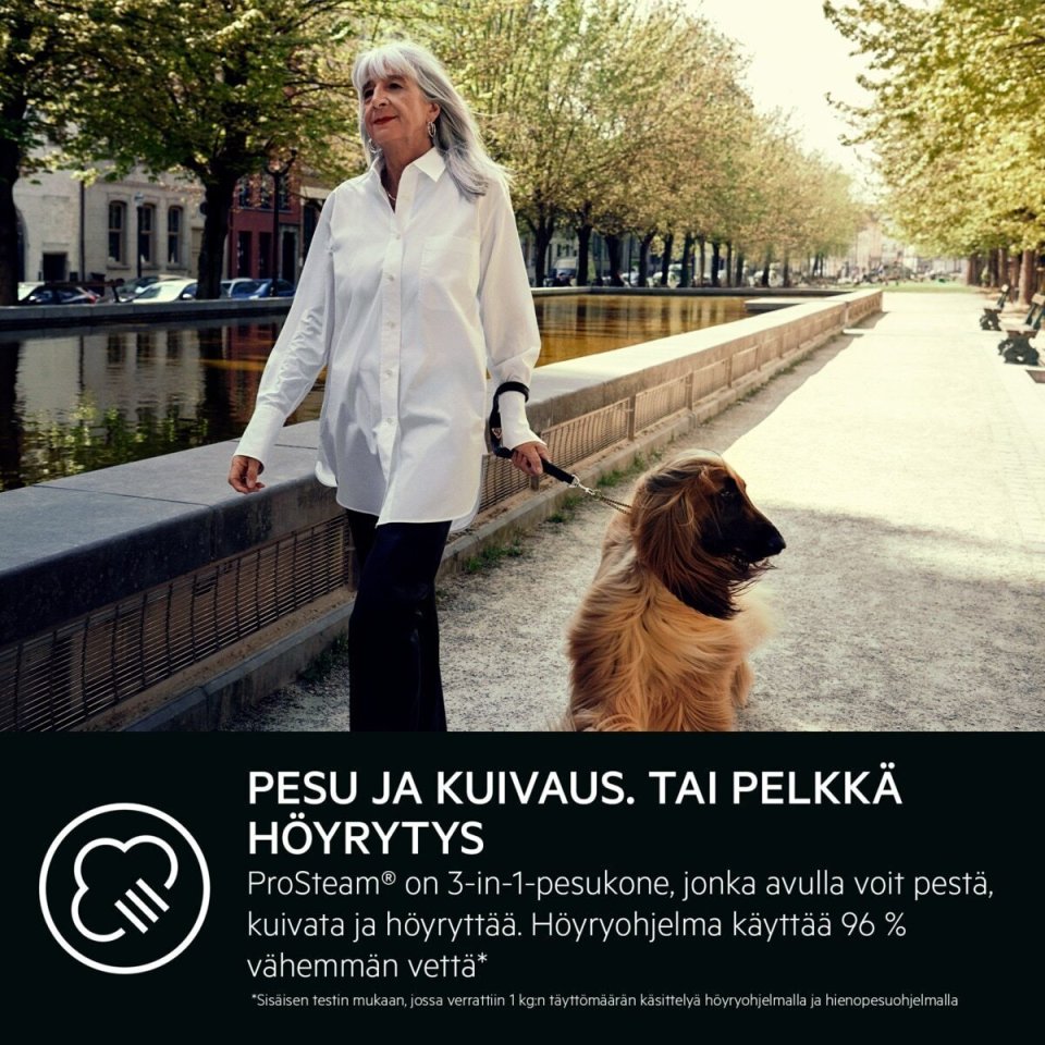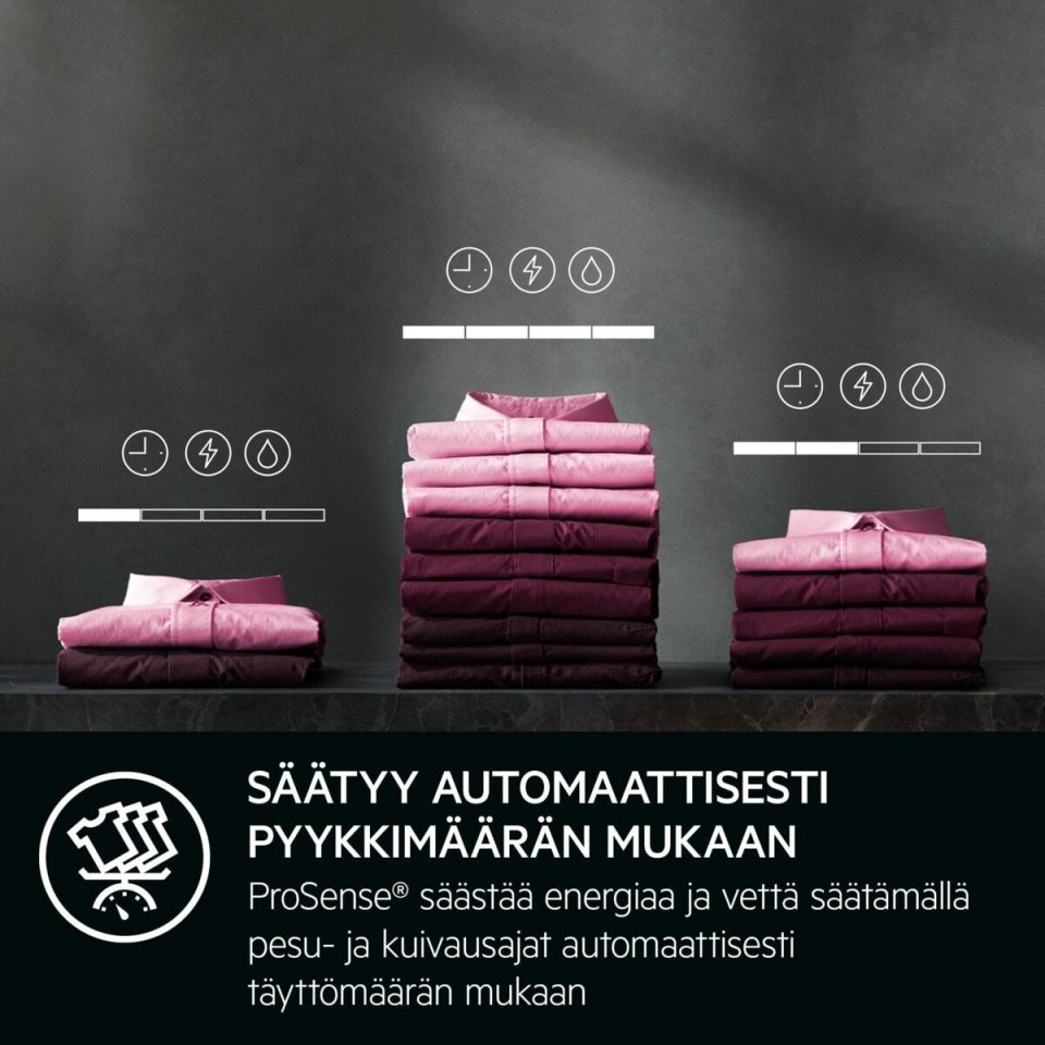 The AEG 7000 ProSteam AutoDose washer dryer combines effective and gentle care for all your fabrics. It features smart functions like automatic detergent dosing, fabric-specific program adjustments, and steam refresh to keep your clothes in good condition and simplify your laundry routine.