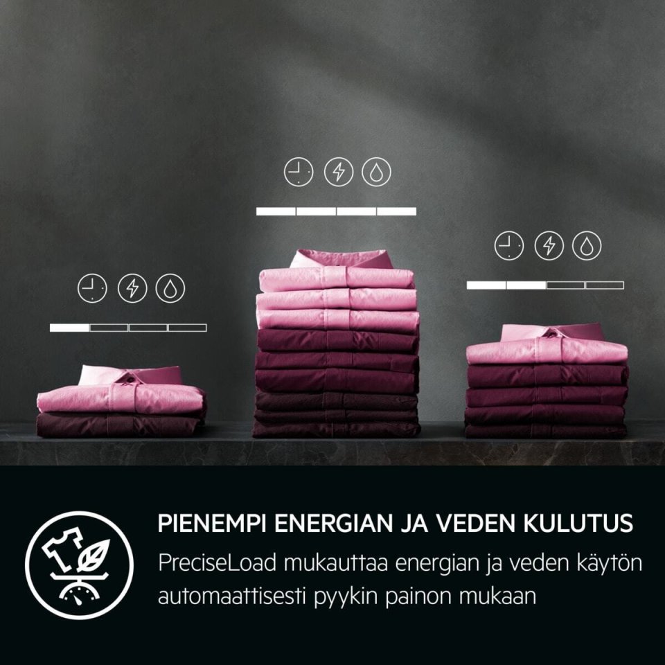 PreciseLoad adjusts the program duration, water, and energy use according to the size of your laundry. This makes washing and drying more efficient, especially with smaller loads.