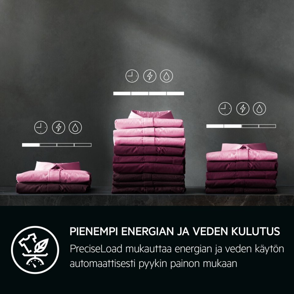PreciseLoad automatically adjusts water, energy, and time based on the laundry load. This feature is especially efficient with smaller loads.