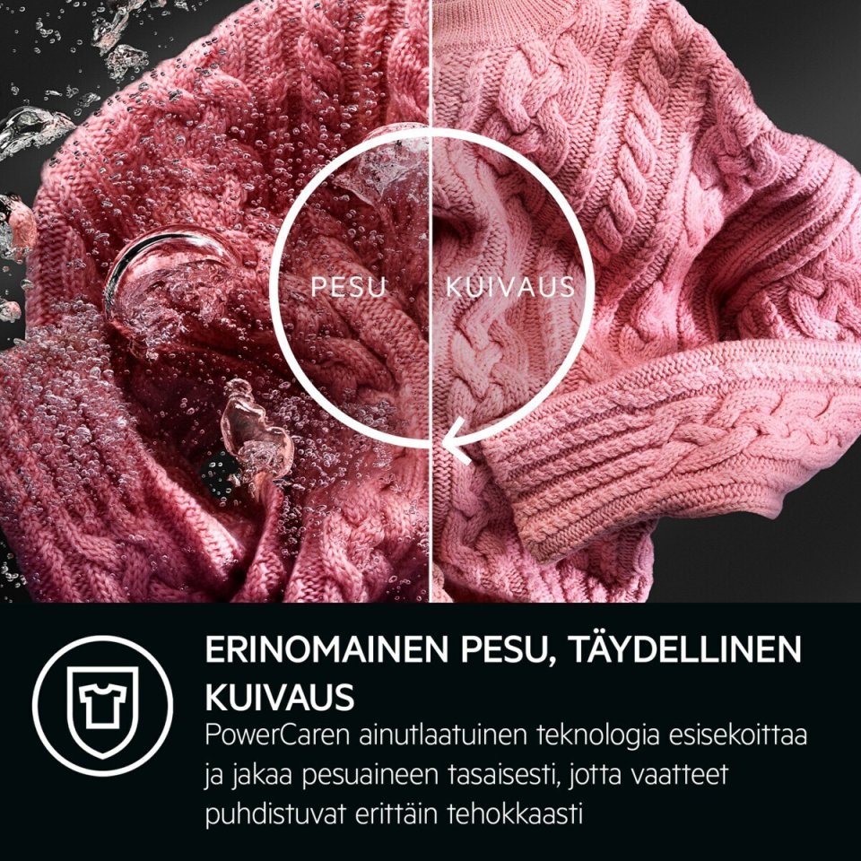 The AEG 8000 PowerCare washer-dryer combines advanced washing technology with gentle drying in a single unit. Smart features like PowerClean, Steam Refresh, and SpecialCare Wash-to-Dry deliver reliable results for all types of fabrics—quickly, effectively, and safely.