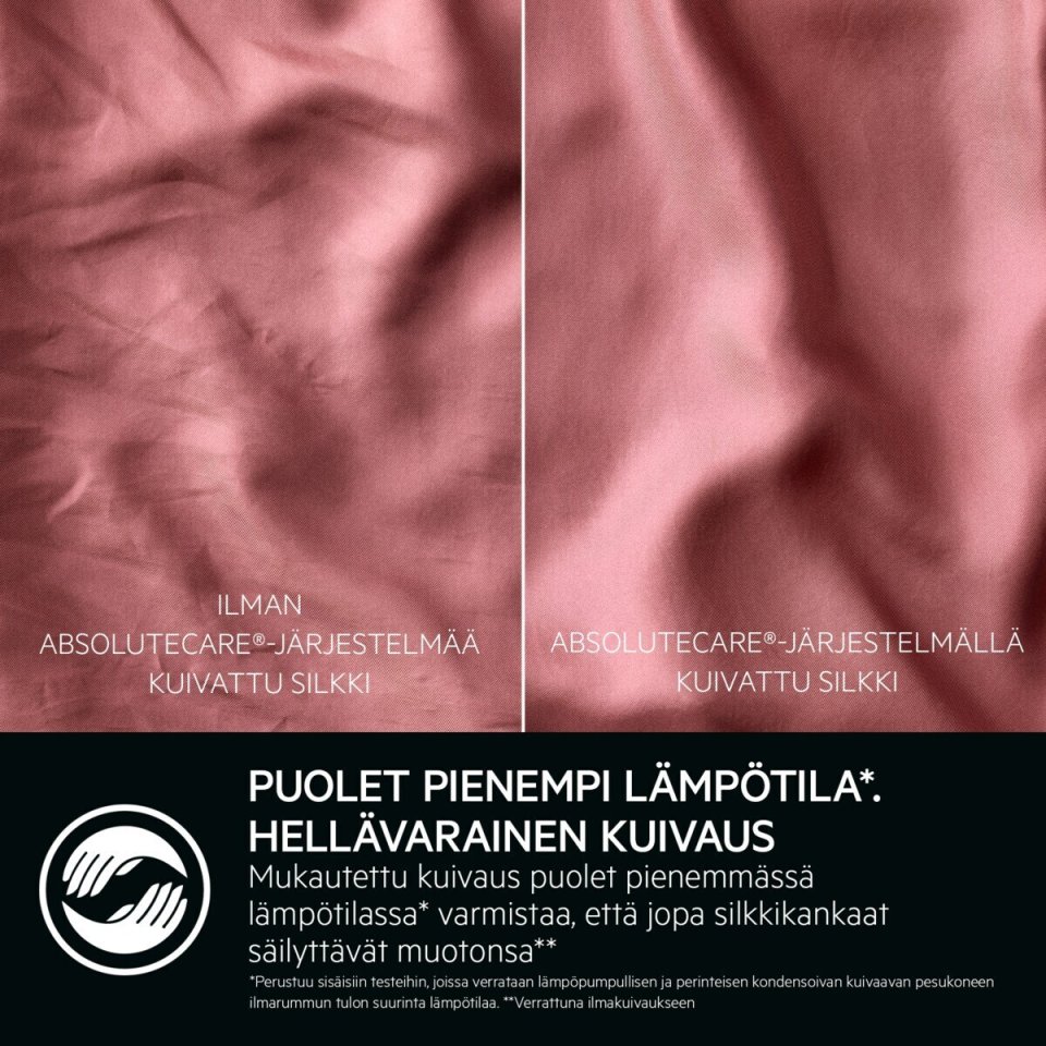 The Care drum design and optimized lifter ensure smooth motion and gentle fabric treatment. A thin water film protects fibers during washing, helping clothes last longer.