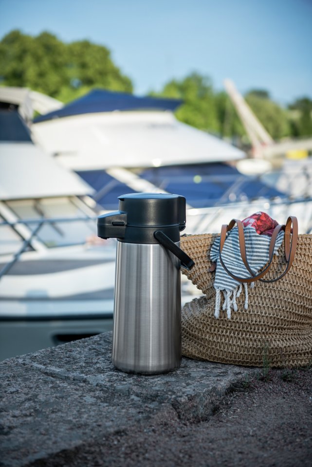 Stainless Steel Pump Thermos 3L, designed for excellent heat retention. It’s easy to fill and empty, making it super convenient for your needs. The built-in pump mechanism simplifies cleaning, so you can spend less time maintaining and more time enjoying your beverages. The pump handle is designed for one-handed use, locking into place and lifting effortlessly. Plus, it doesn’t contain any glass parts, allowing you to add ice cubes when serving cold drinks.