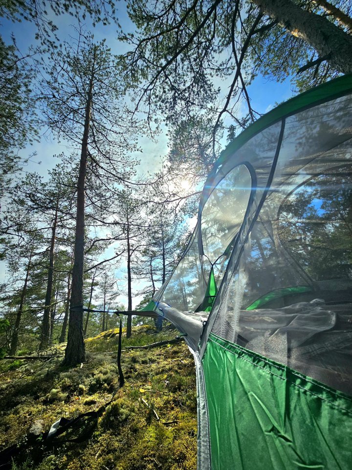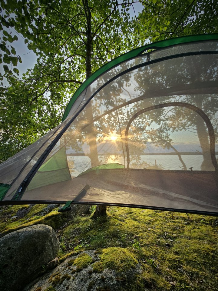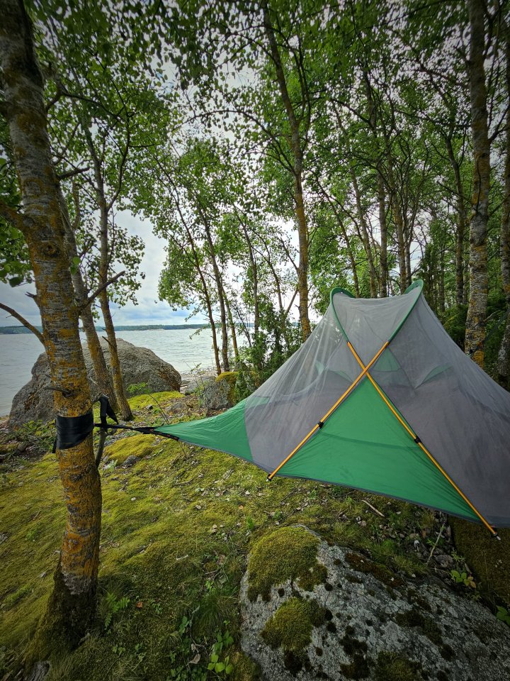 The Atom multi-purpose tent set offers versatile use with the option to set it up on the ground or attach it to a tree. Mounting it in a tree provides protection from uneven terrain, moisture, and small insects or animals. It also allows you to enjoy elevated views of the surrounding nature. This tent is ideal for those seeking a different camping experience with a focus on practicality and comfort.