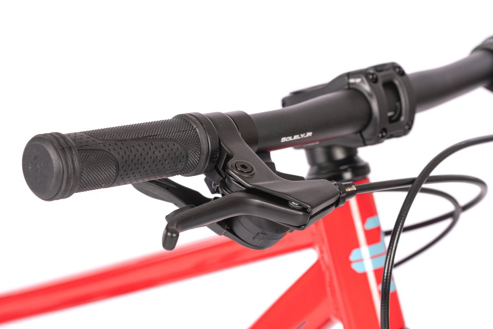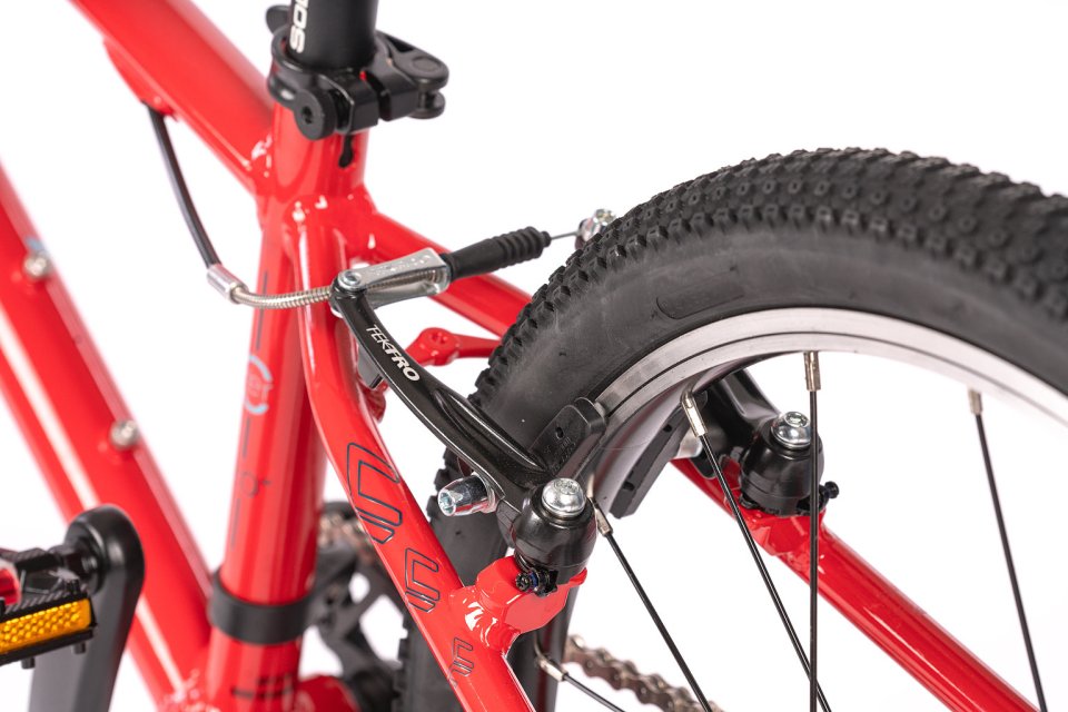 The bike features reliable Tektro 837AL V-brakes and small Solely.jr brake levers designed to fit a child’s hand. The riding position is ergonomic and comfortable, supporting good posture and riding comfort even on longer rides.
