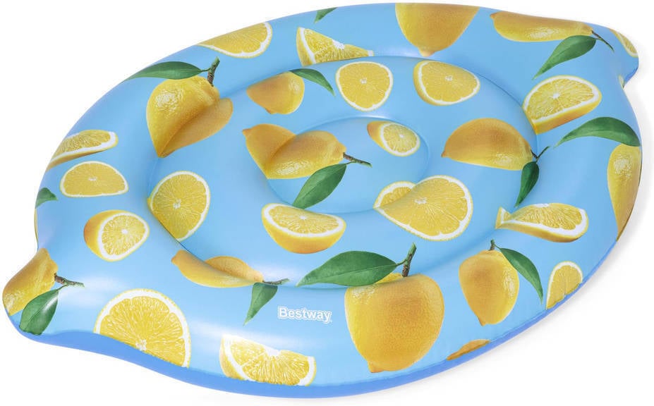 This lemon-scented float features a refreshing fruity design that’s sure to brighten up your pool days! With dimensions of 176 x 122 cm, it's spacious enough for lounging around. Plus, the package includes a repair patch for your convenience.