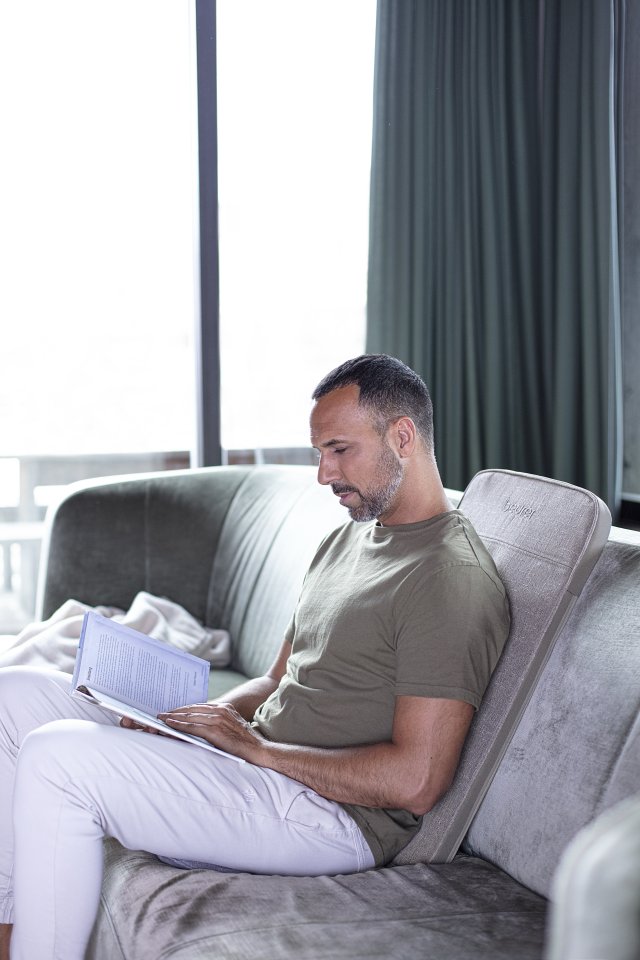 The massage seat is designed for everyday use. Its lightweight construction makes it easy to move, and the slim backrest cover fits various chairs and sofas. The fastening straps keep the seat securely in place, so you can use it on, for example, an office chair or a living room sofa.