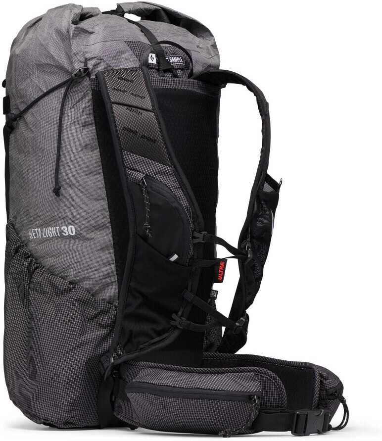 The Black Diamond Beta Light 30 backpack is an ultra-light carrying device for a couple of nights' quick hikes or a hiking backpack pared down to the essentials. The backpack is mainly made of high-quality, lightweight, and durable Challenge Sailcloth Ultra 200 fabric relative to its weight. More durable Ultra 400 material is used in areas more prone to wear. Together with the roll-top closure, the waterproof fabric makes the backpack very resistant to the elements. However, the seams of the backpack are not sealed, so it is not completely waterproof.