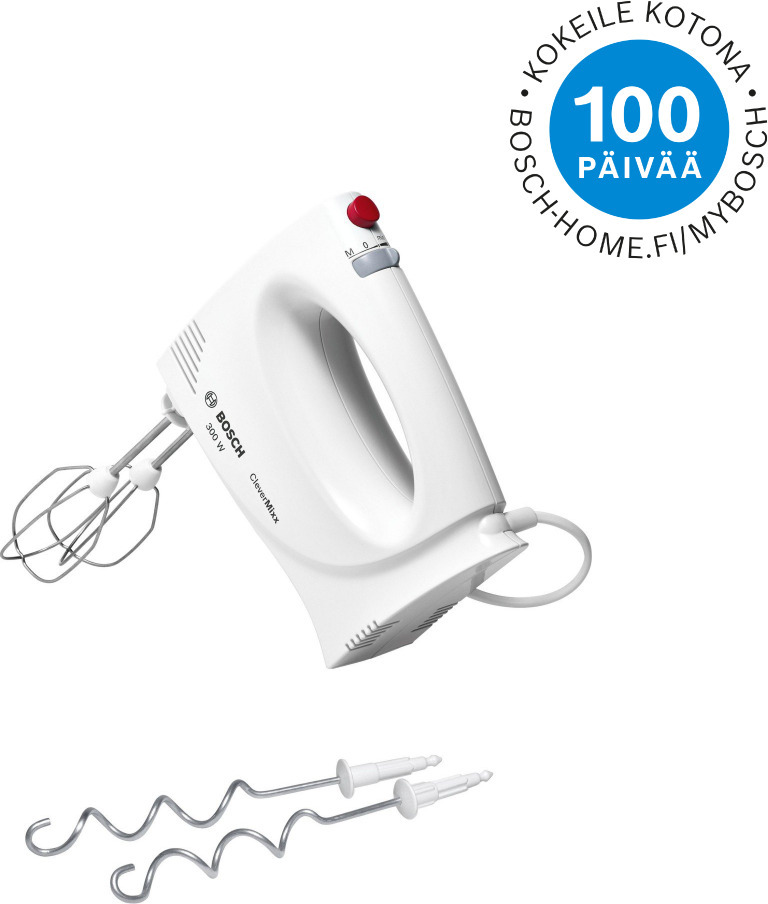 Bosch MFQ3010. Malli: Käsisekoitin, Tuotteen väri: Valkoinen, Johdon pituus: 1,4 m. Kotelon materiaali: Muovi, Terän materiaali: Ruostumaton teräs. Teho: 300 W, AC-syöttöjännite: 220 – 240 V, AC-syöttötaajuus: 50 – 60 Hz. Tuotteen leveys: 70 mm, Tuotteen syvyys: 184 mm, Tuotteen korkeus: 140 mm. Pakkauksen paino: 1,1 kg