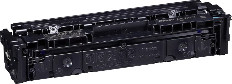 The Canon 075 C cyan toner cartridge is designed for use with Canon's i-SENSYS laser printers. This original cartridge ensures consistent and high-quality color printing, specifically delivering vibrant cyan tones.