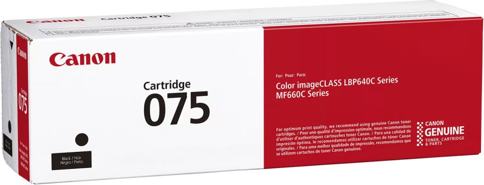 The Canon 075 black toner cartridge is designed for Canon i-SENSYS laser printers. It delivers reliable black and white prints with consistent quality, making it a practical choice for everyday printing needs.