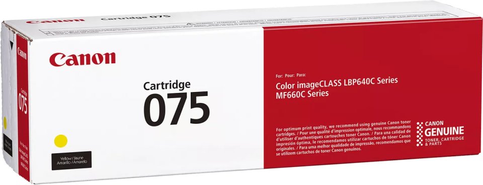 The Canon 075 Y is a yellow toner cartridge designed for use with Canon's i-SENSYS laser printers. It delivers consistent color output, ensuring your prints maintain clear and vibrant yellow tones throughout.