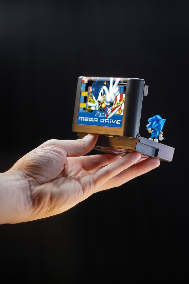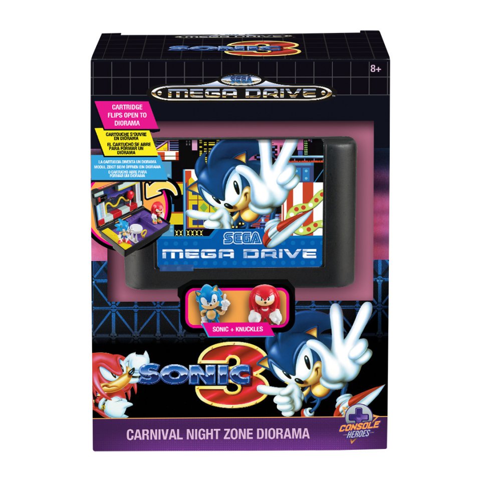 The Console Heroes Mega Drive Sonic 3 diorama is a collectible that depicts the Carnival Night Zone scene from the Sonic the Hedgehog 3 game inside a Sega Mega Drive game cartridge. It is designed for Sonic game fans and collectors who want a miniature model suitable for display or play.