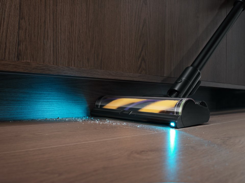 The vacuum’s illuminated multi-surface brush uses CelesTect technology to light up the cleaning area at a 140-degree angle, revealing hidden dust up to 16 times better. It automatically detects the floor type and adjusts the brush’s rotation speed to provide optimal cleaning on both hard floors and carpets.
