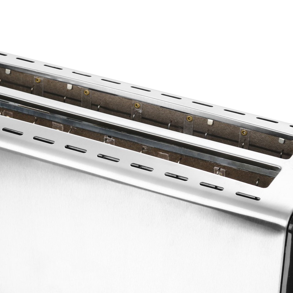 The toaster’s automatic centering feature keeps bread perfectly aligned, so it toasts evenly on both sides without needing to flip or adjust.
