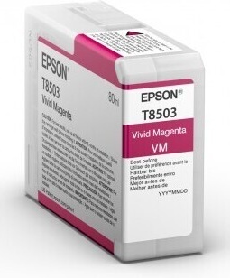 The Singlepack Vivid Magenta T85030N is an original Epson ink cartridge designed for vibrant magenta printing. It is compatible with Epson SureColor SC-P800 printers, ensuring reliable performance and color accuracy.
