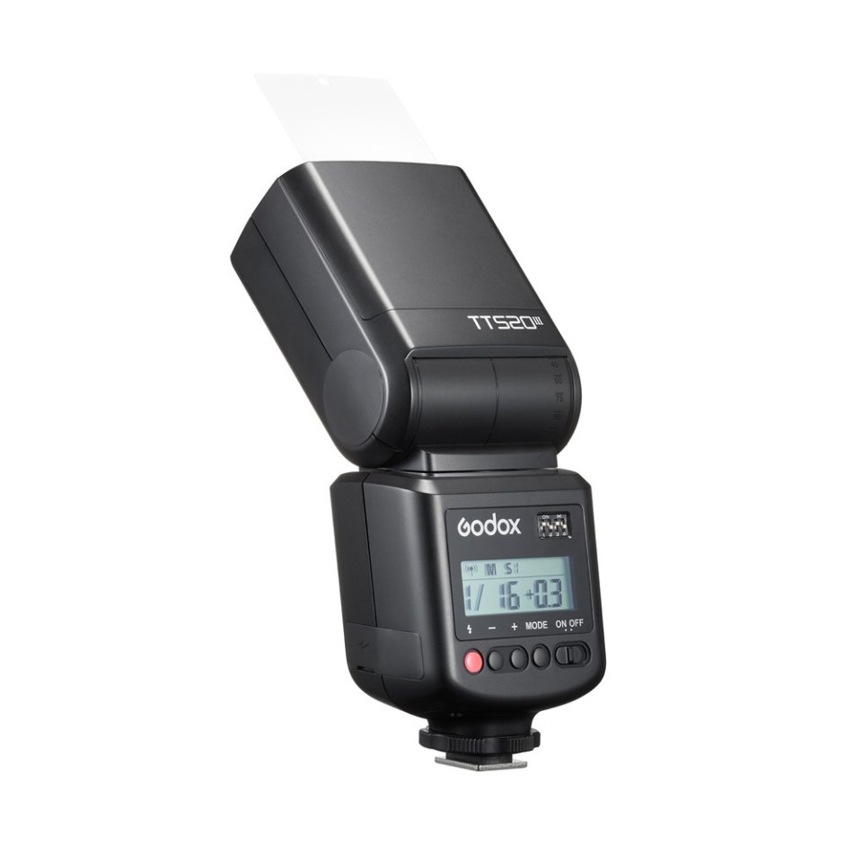 The Godox Speedlite TT520 III is a versatile flash that features a reliable 433 MHz wireless receiver and 16-channel synchronization with the RT transmitter. Its bright output and fast recycling times make it suitable for various photography situations. Compatible with multiple camera brands, the adjustable flash head allows flexible light direction for creative lighting setups.