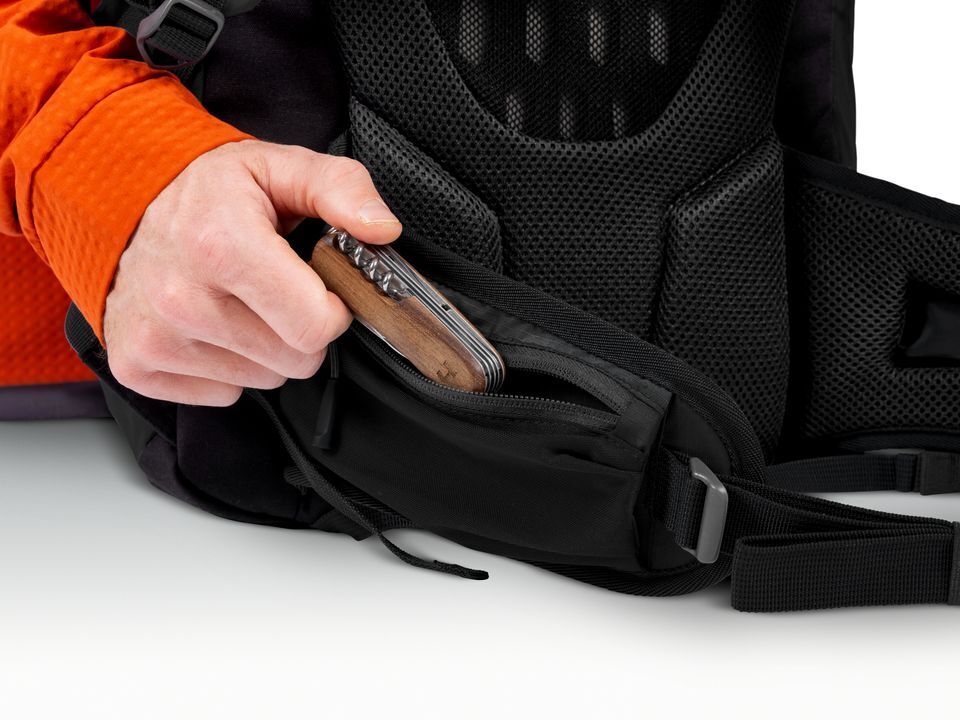The backpack’s two compartments allow for sensible sorting of items. The top opening is easy to open and close, and the bottom opening provides access to items packed at the bottom without having to empty the entire backpack.