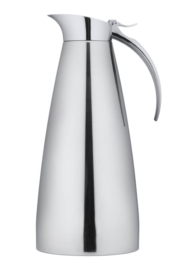 The carafe is crafted from polished stainless steel, offering a sturdy and corrosion-resistant surface. Its double vacuum walls help maintain the temperature of your beverages longer.