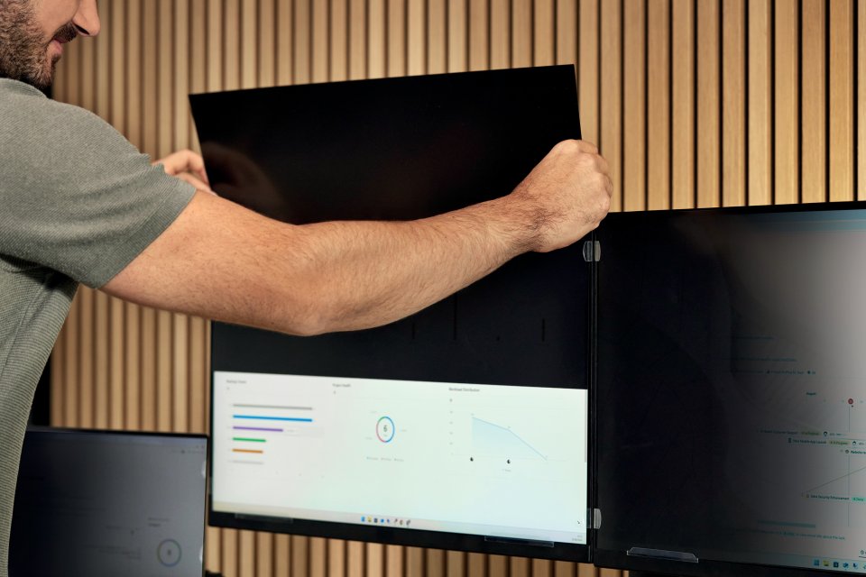 The security filter prevents side viewers from seeing the screen content, making it suitable for workplaces or public spaces. Screen information stays secure from prying eyes as the viewing angle remains narrow.