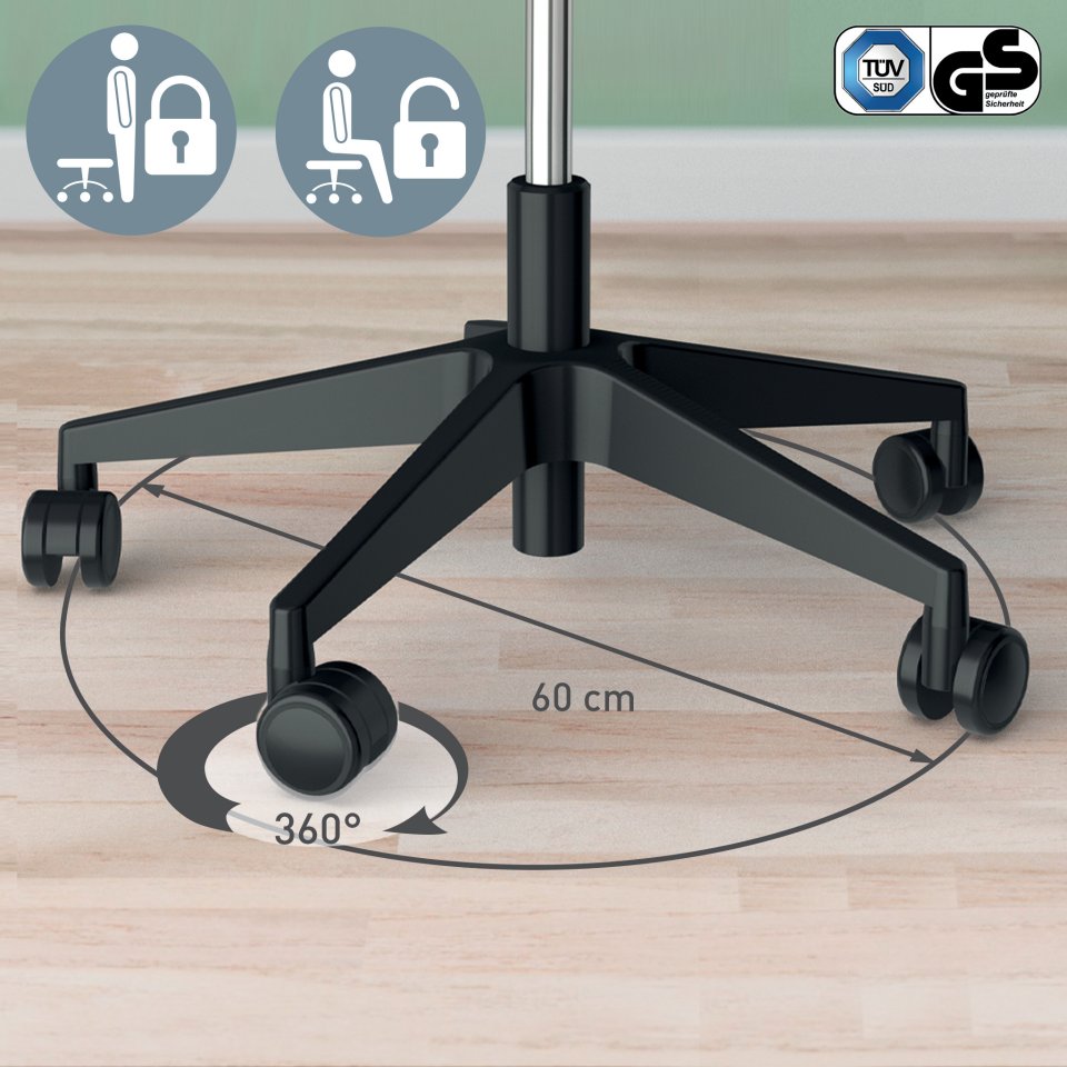 The Leitz Ergo active chair features wheels and a rocking saddle seat designed to improve sitting comfort and support your body’s natural movement throughout the workday. Its tilting saddle seat helps maintain good posture while reducing strain on your back. The chair’s wheels allow easy and flexible movement, enhancing comfort especially in office settings.