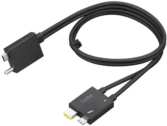 Cable designed for the ThinkPad Thunderbolt 4 WorkStation Dock that combines a slim power connector and a Thunderbolt 4 cable into one seamless solution.