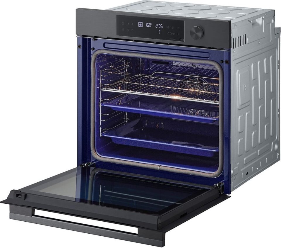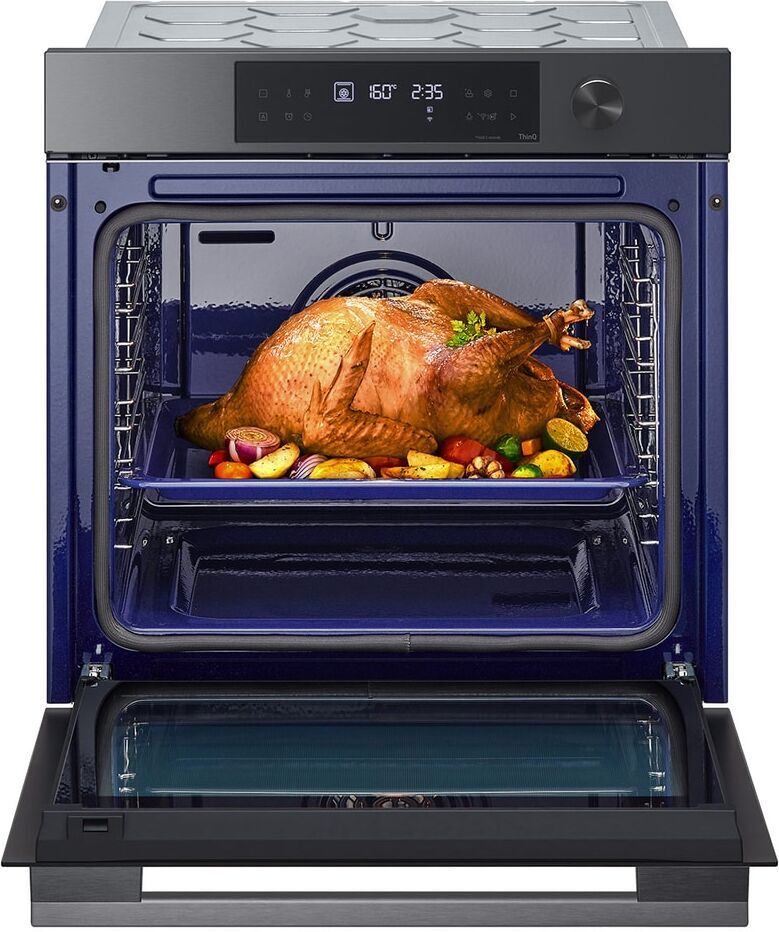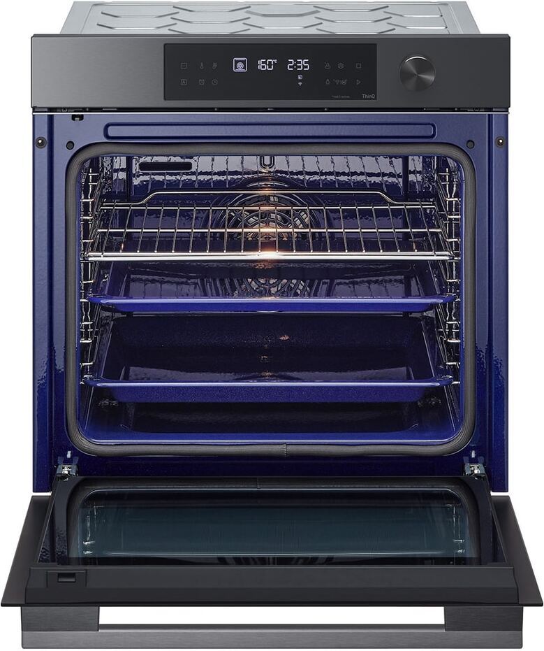 Blue EasyClean™ is LG’s proprietary low-temperature oven cleaning technology. Unlike traditional self-cleaning programs that use high temperatures (up to 500 °C), Blue EasyClean™ uses steam and a special enamel coating to loosen food residues and grease, and it takes only 10 minutes.