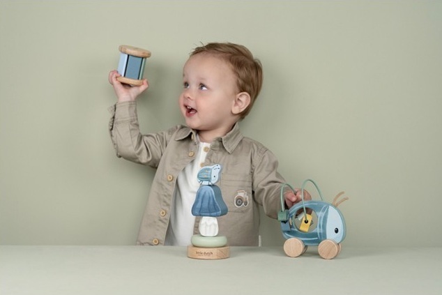 The beautiful gift set includes beloved wooden toys from the enchanting Little Dutch Forest Friends collection. The set contains a fun wheeled activity bug, a stackable block tower, and a rattle. Made from FSC wood.