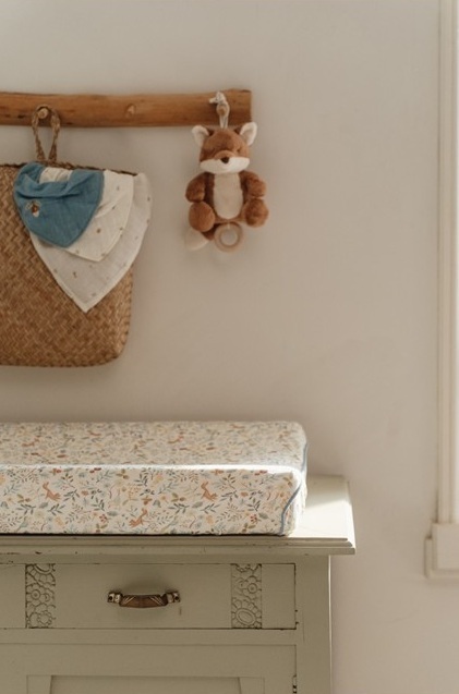 The cute fox figure adds a whimsical element to the nursery decor, making it both a functional and decorative piece.