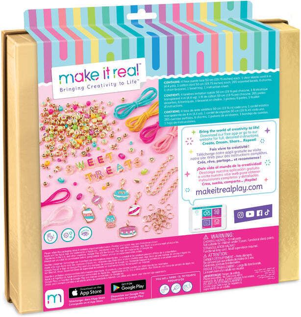 Get ready for some creative fun with the Make it Real Sweet Treats bracelet crafting set! You can create seven adorable bracelets with this delightful DIY bracelet kit. The package includes everything you need, along with simple instructions that make crafting easy and enjoyable!