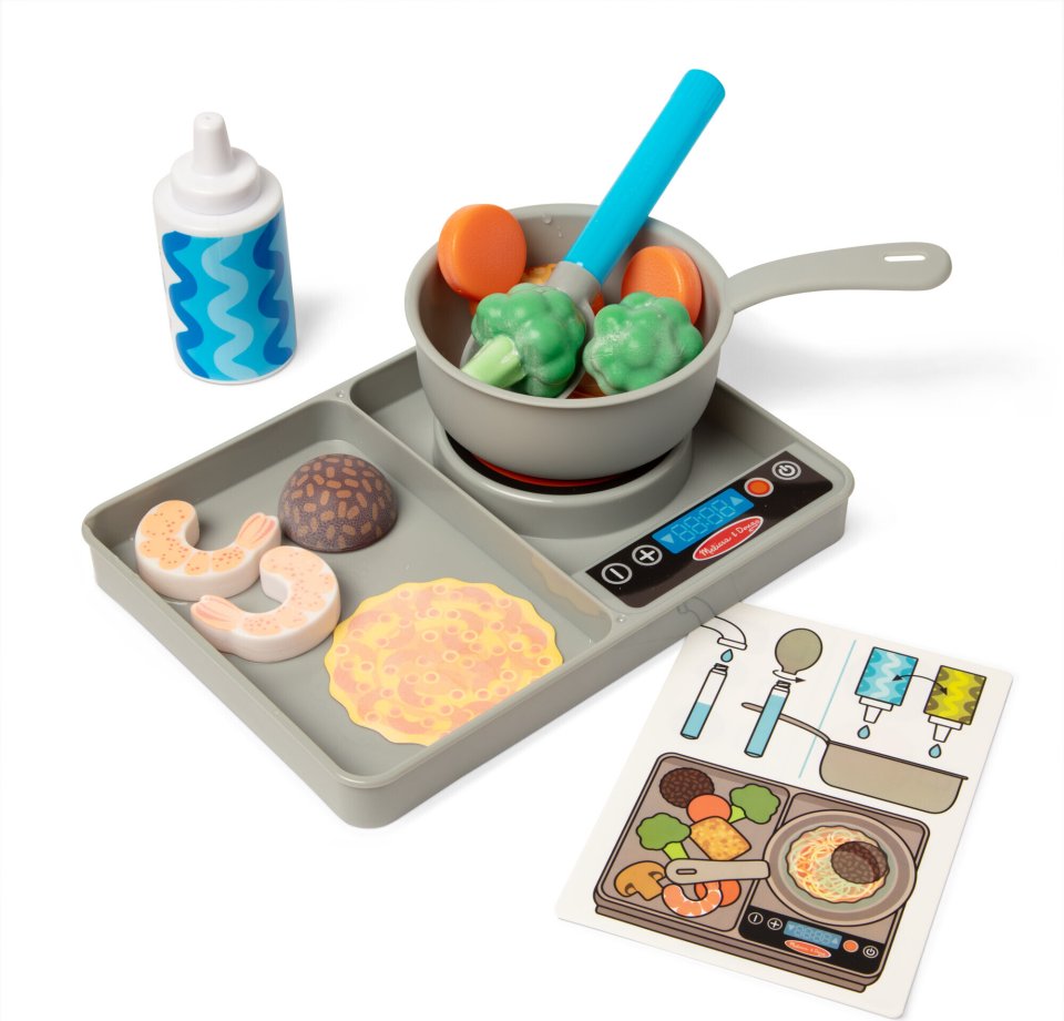 Add water, stir, and be amazed as the food “cooks” before your eyes. The playset includes a Water WOW! spoon for dispensing water, a play stove, a pot for stirring food, an oil/water bottle, Water WOW! vegetables and protein sources that change color. It feels and looks like you’re actually cooking, taking cooking play to a whole new level!