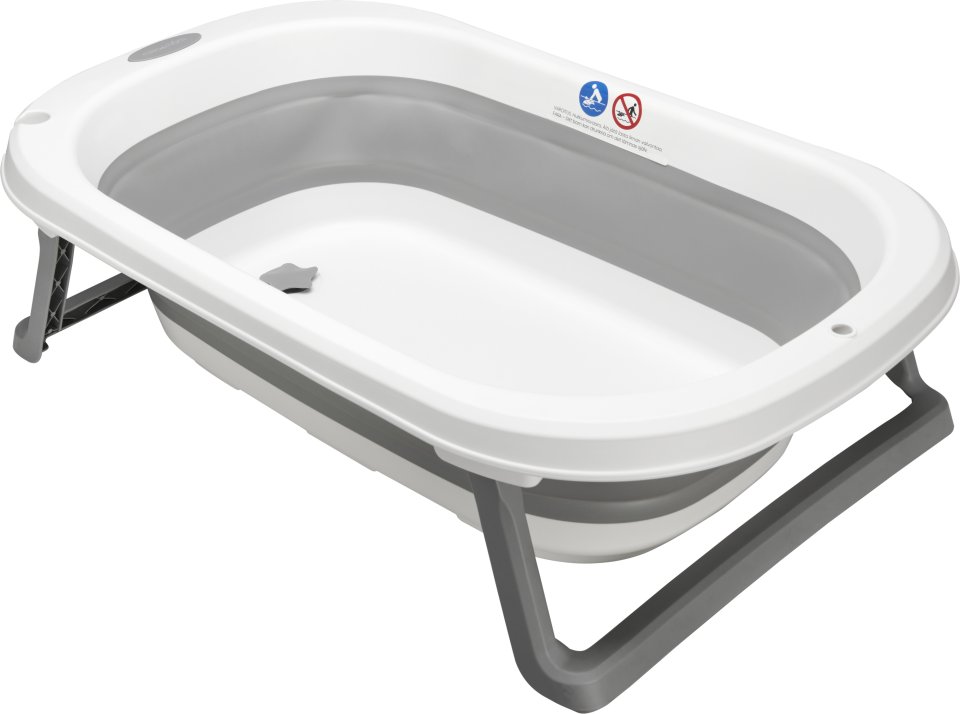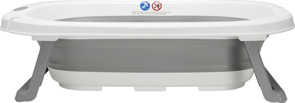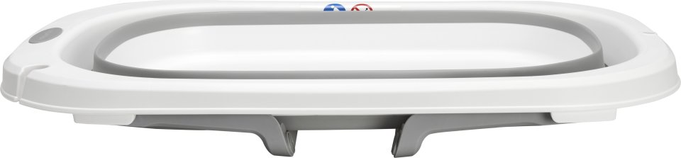 The Milla & Måns bathtub is a compact, 80 cm long tub that folds down for easy storage. When folded, it lays flat, saving you plenty of space in your home or while traveling – it stands just 9 centimeters tall when collapsed.