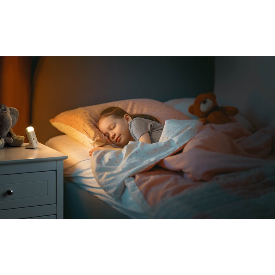 The nightlight works both locally and via remote control, making it easier to soothe your child in the dark. The device also features lullabies that can be activated from the parent unit. Thanks to the USB-C connection, charging is fast and convenient, and the rechargeable batteries make usage safe and environmentally friendly.