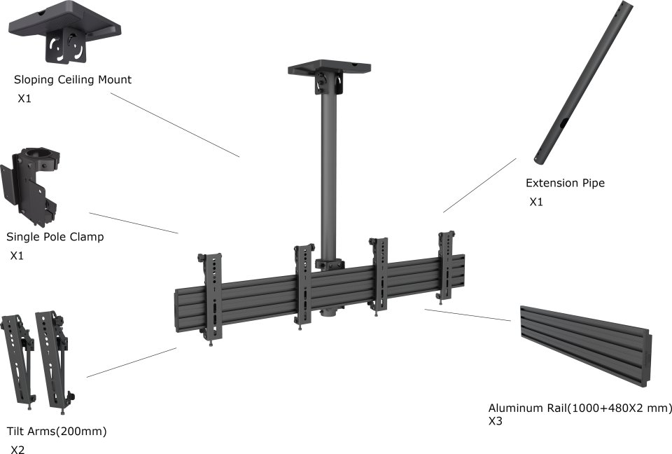Multibrackets M Menu Board Mount Pro MBC2X1U - Ceiling Mount for Two Displays