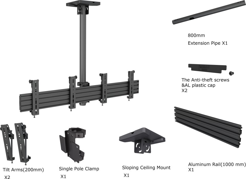 Multibrackets M Menu Board Mount Pro MBC2X1U – Ceiling Mount for Two Displays