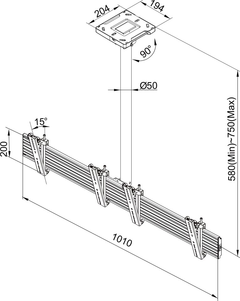 The pipe mount rotates 360 degrees and slides smoothly up and down, making it incredibly easy to adjust the display to the desired height and viewing angle. The tilt feature allows you to angle the display downward if needed.