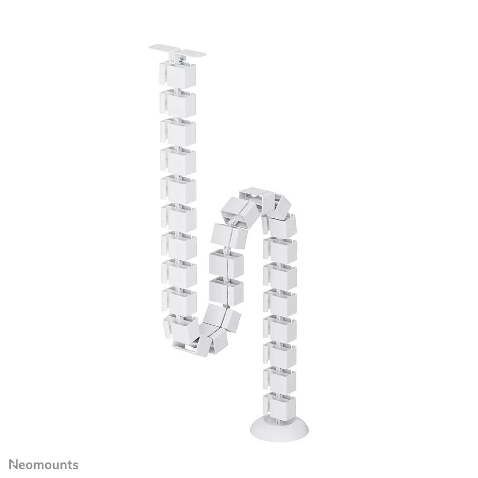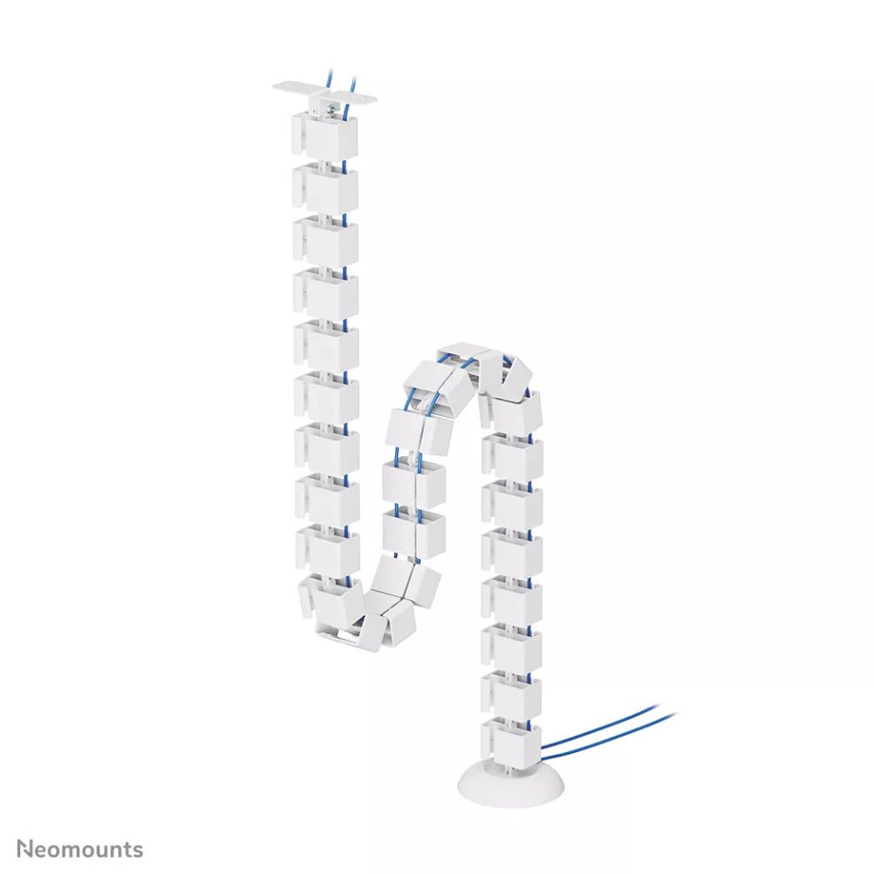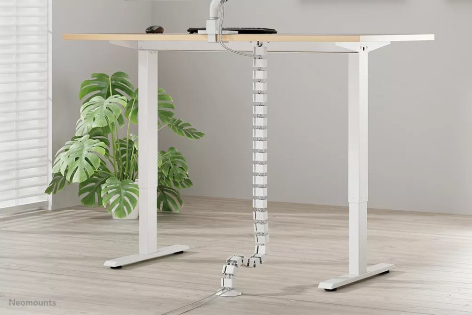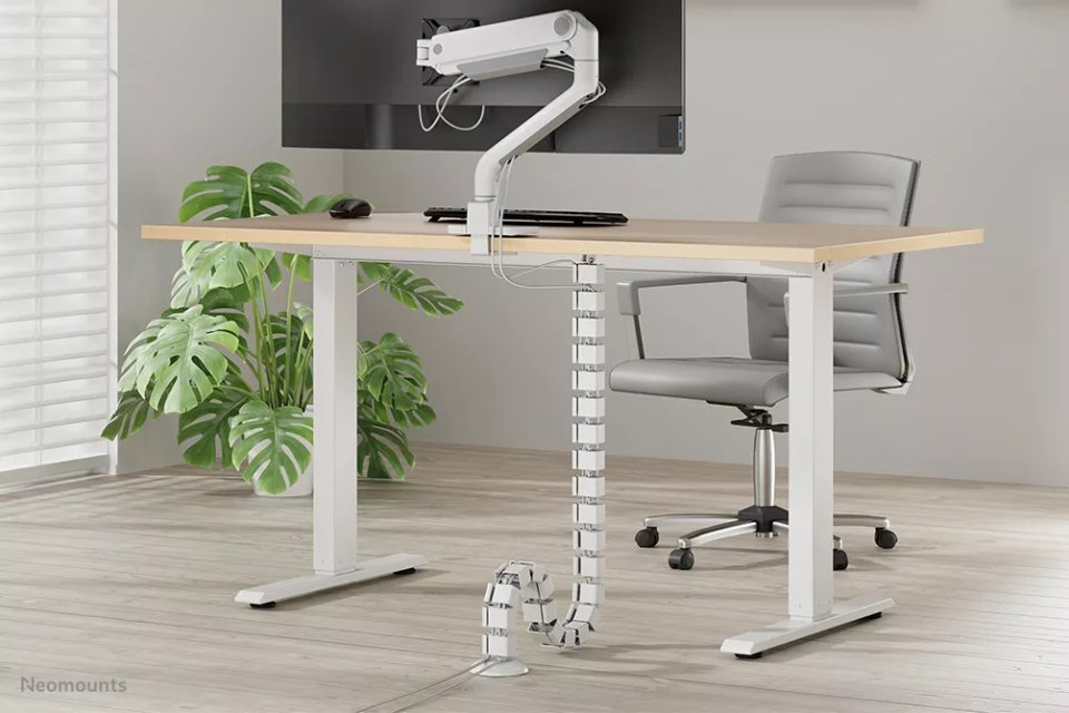 Neomounts ADS06-130WH is a flexible cable tray designed for desk cable management. It helps organize and guide cables neatly, reducing clutter under or around the desk.