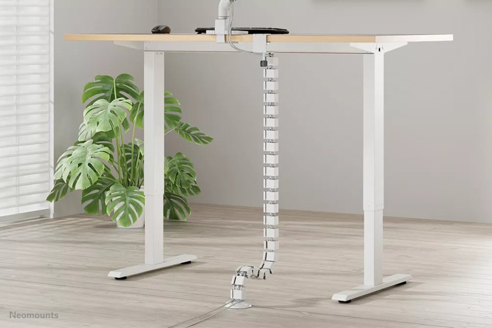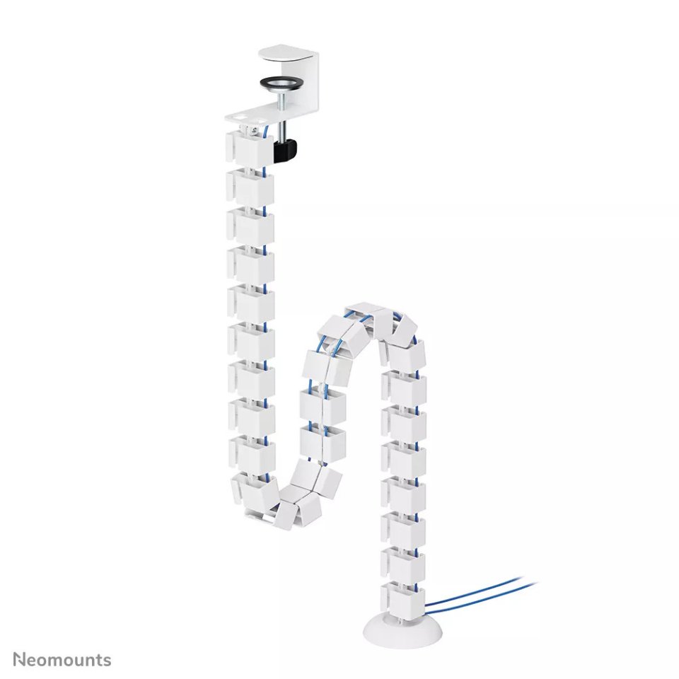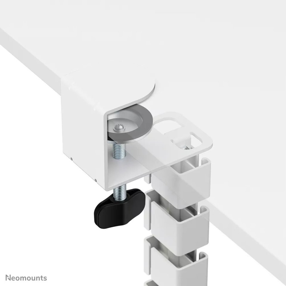 Neomounts ADS06-131WH is a cable organizer that helps keep your desk neat and organized. It is designed for cable management and organization at the edge of the desk.
