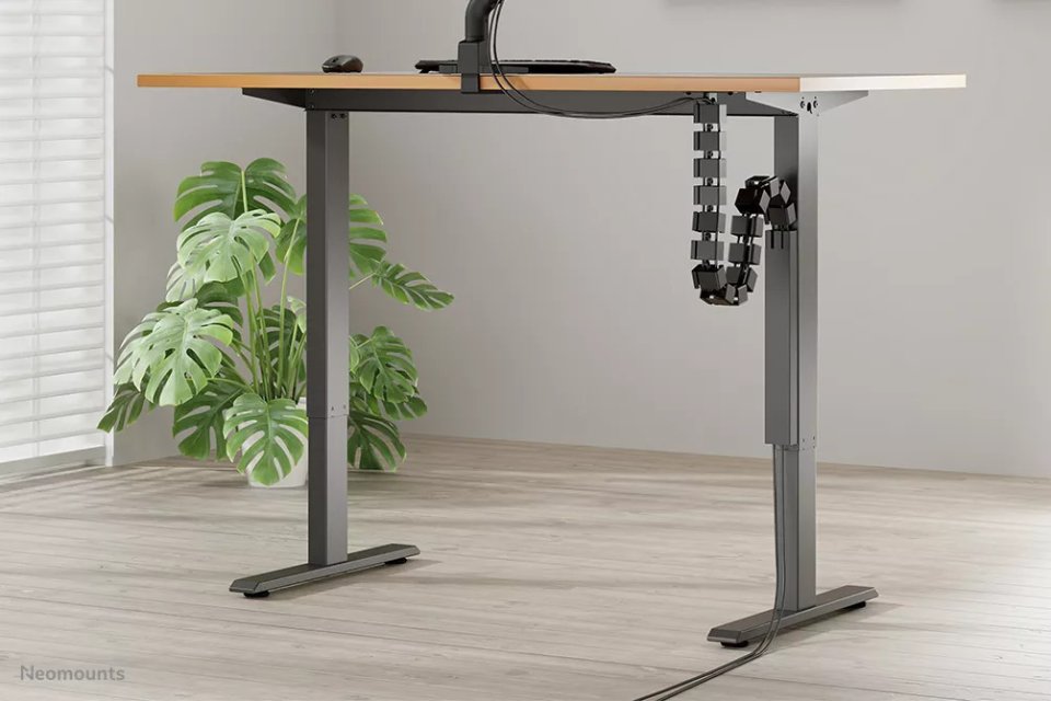 Neomounts ADS06-133BL is a cable organizer that helps keep cables tidy at the workstation. It is specifically designed to neatly arrange and guide cables, ensuring the workspace remains clean and cables do not get tangled.