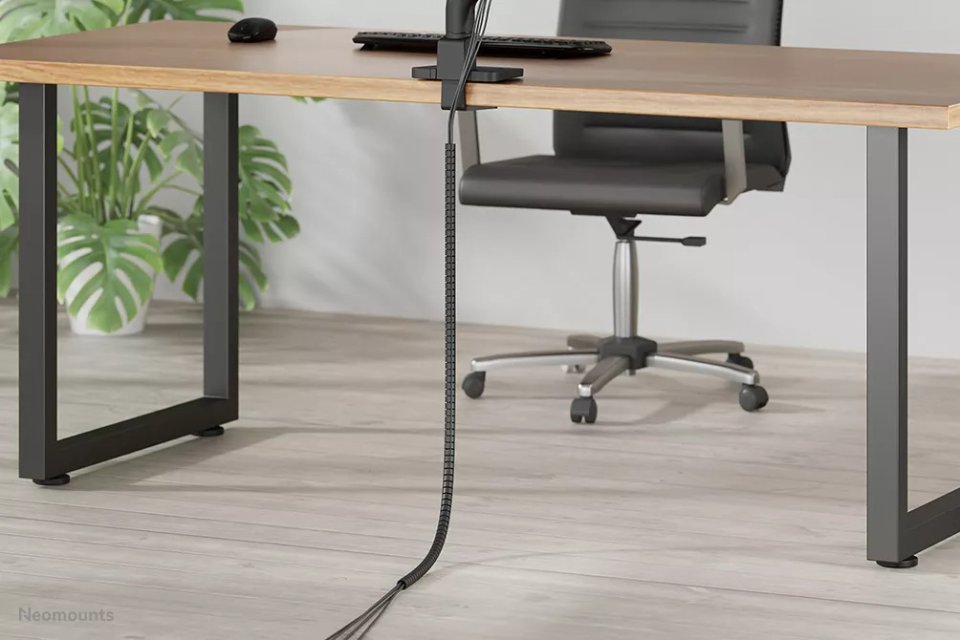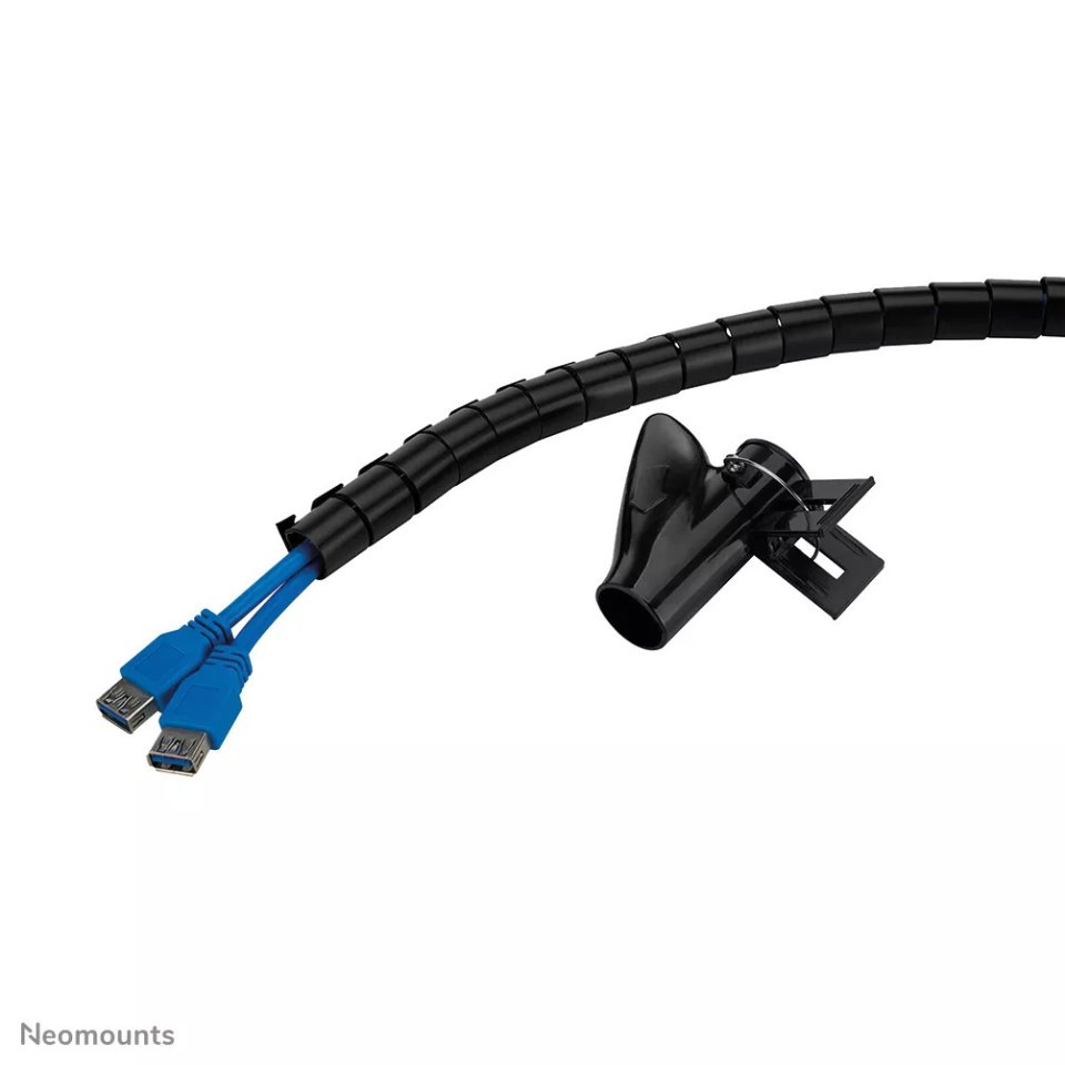 The Neomounts ADS06-141BL is a flexible cable organizer that acts as both a cable protector and organizer. It is designed for neat and controlled management of up to four cables.