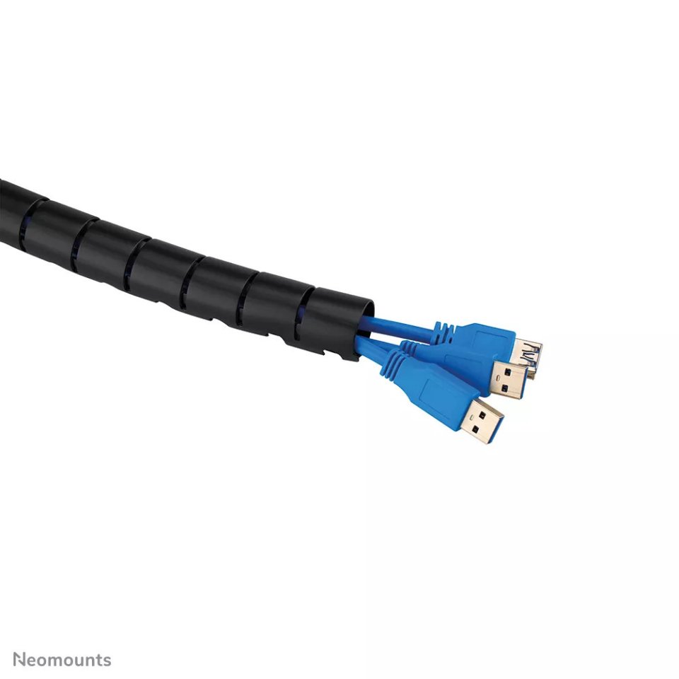 Neomounts ADS06-142BL is a flexible cable organizer that functions as both a cable protector and organizer. It is designed for neat and controlled management of up to five cables.