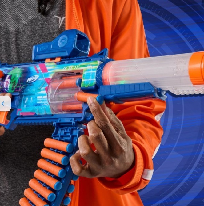 • Blaster has a 6-dart rotating magazine