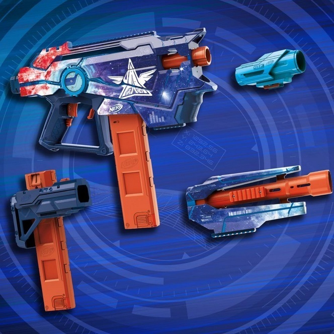 • Interchangeable accessories for customizing the blaster
