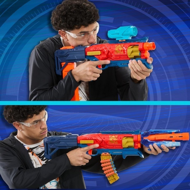 Dive into secret missions with the pump-action blaster that has a six-dart rotating drum and an impressive Shadowspeed Recon skin.