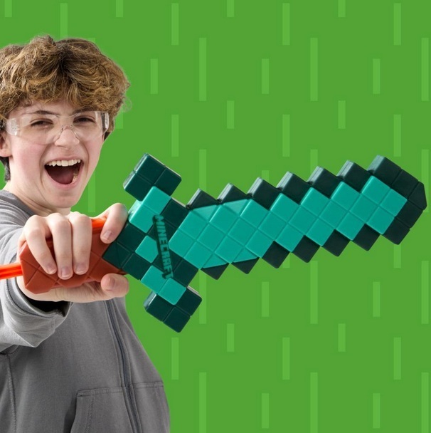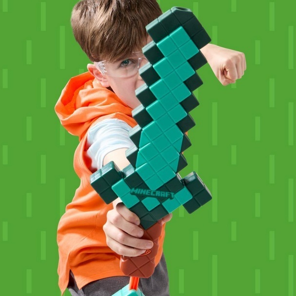 The sword is a striking addition to your Minecraft collection and a cool toy blaster for Nerf battles. It offers active play for outdoor games and also works as a great role-play accessory. Wearing safety glasses is recommended (not included).