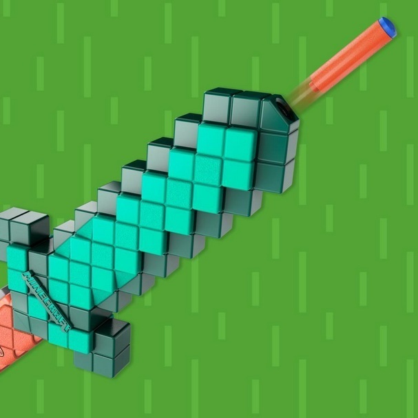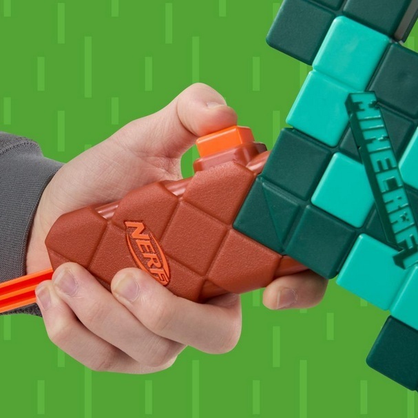 Nerf and Minecraft have joined forces to create unique toy blasters for Nerf battles! The Nerf Minecraft Diamond Sword toy blaster is inspired by the swords from the popular Minecraft game. You can use it in battles as a sword or a toy blaster, doubling the fun of playtime.