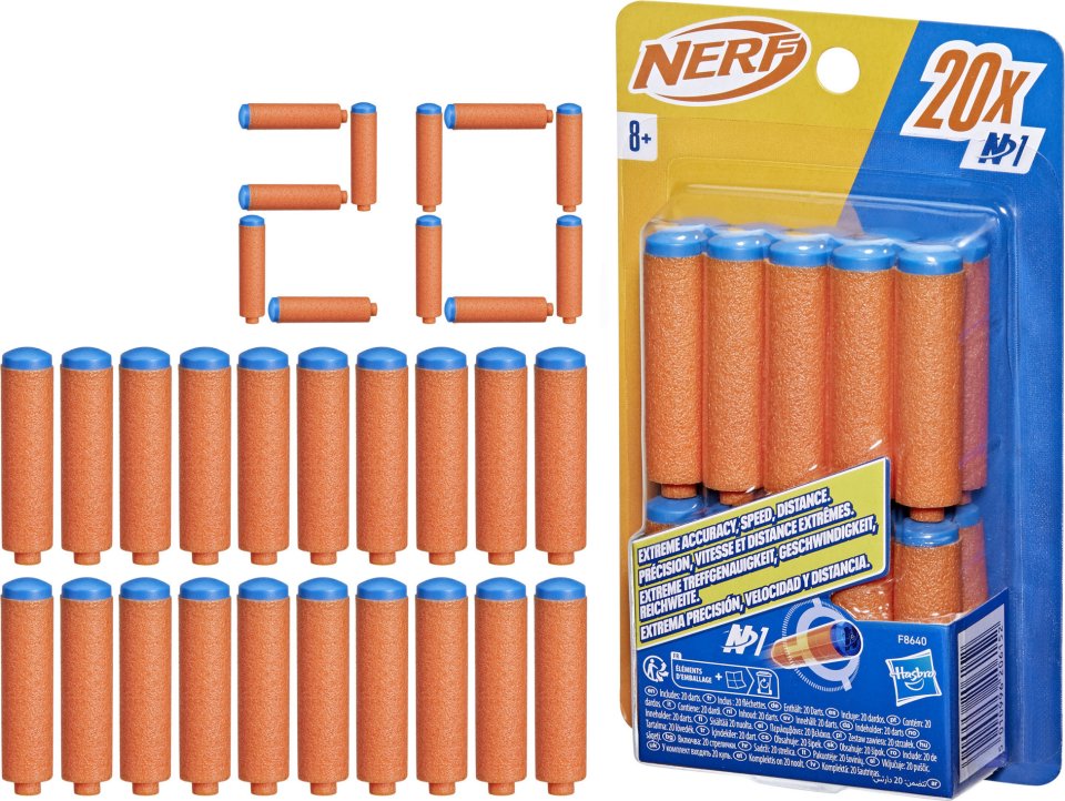 The package includes 20 Nerf N series N1 darts, compatible only with Nerf N series blasters.