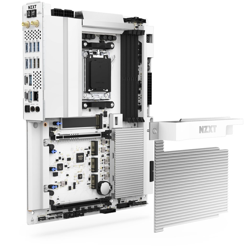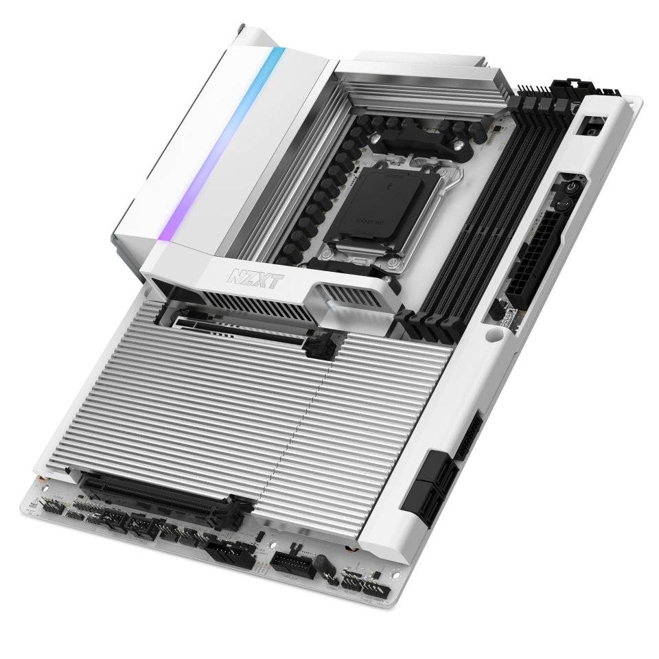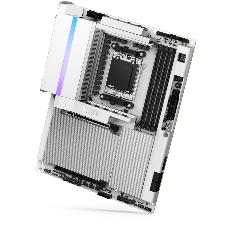 The NZXT N9 X870E is an ATX-sized motherboard designed for AMD's latest Ryzen 7000, 8000, and 9000 series processors with an AM5 socket. It supports DDR5 memory with four DIMM slots in a dual-channel configuration. The motherboard features the AMD X870E chipset, which offers stable performance and versatile connectivity, including PCIe 5.0 support and fast storage interfaces.
