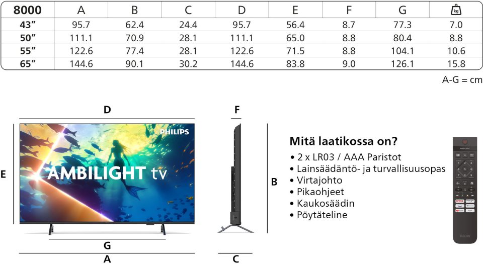The Philips PUS8000 is designed to last and look good. Its European design and high-quality materials make it a stylish addition to any home. The thin frame and edge stand highlight the modern look, and every detail is carefully considered.