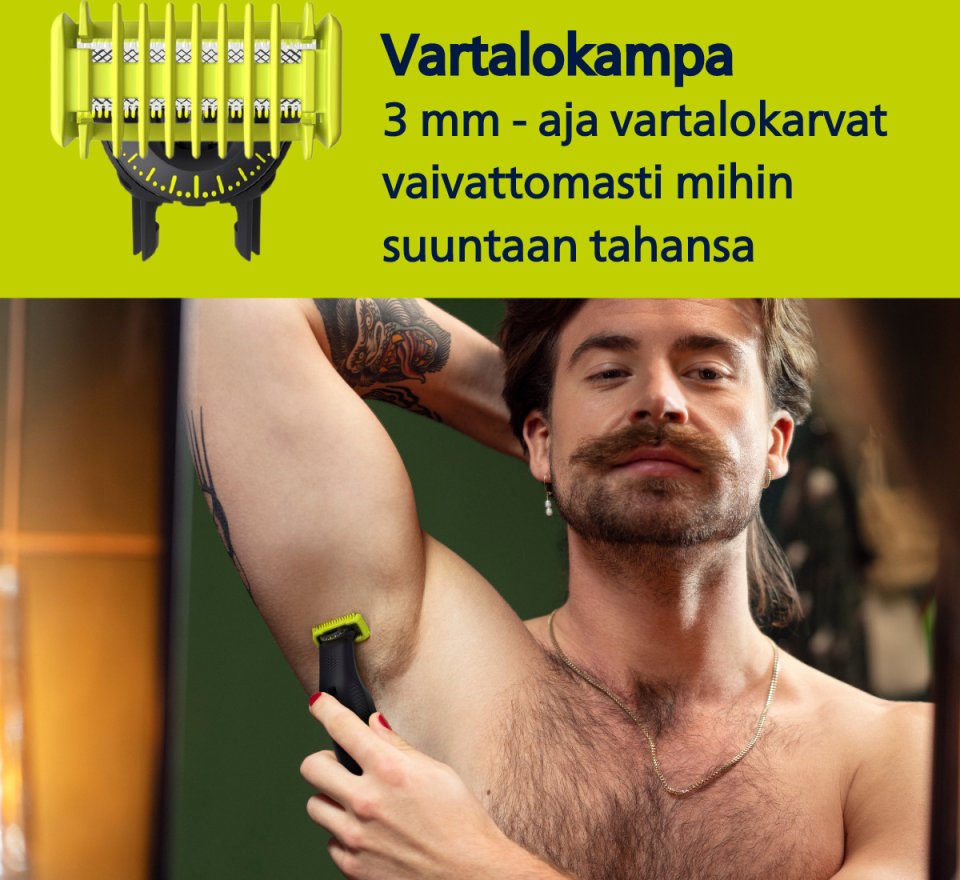 With the body comb, you can trim your entire body, such as chest or stomach, easily and safely in any direction. Thanks to the skin guard, removing unwanted hair from intimate areas and underarms is now easier than ever.