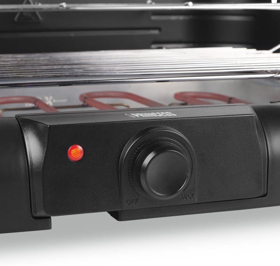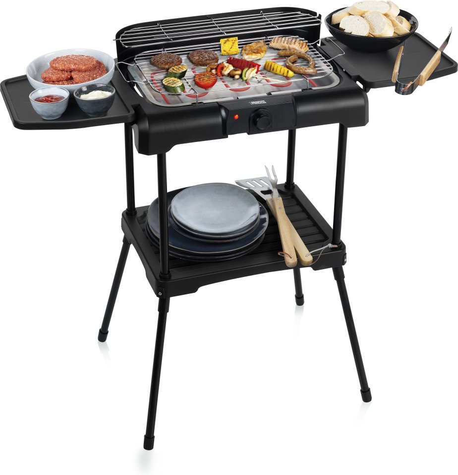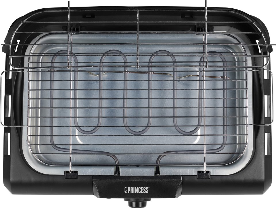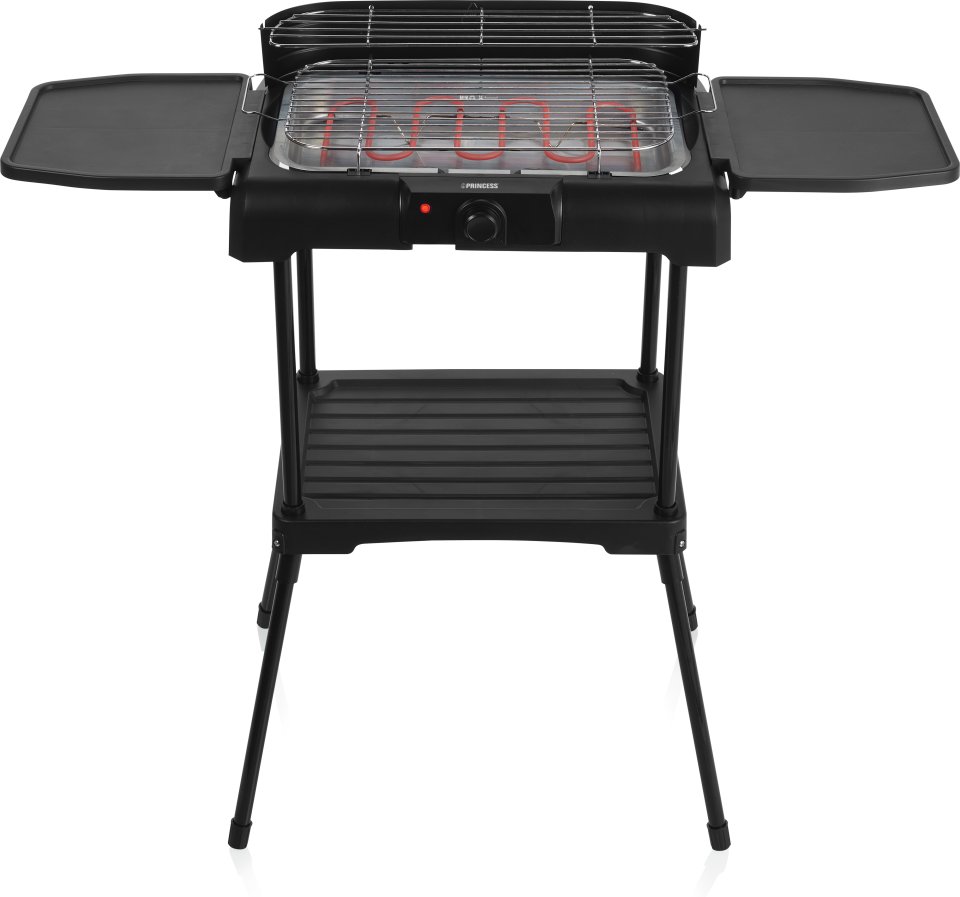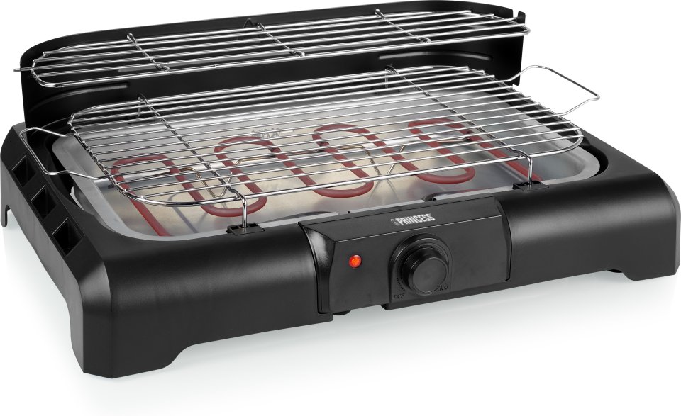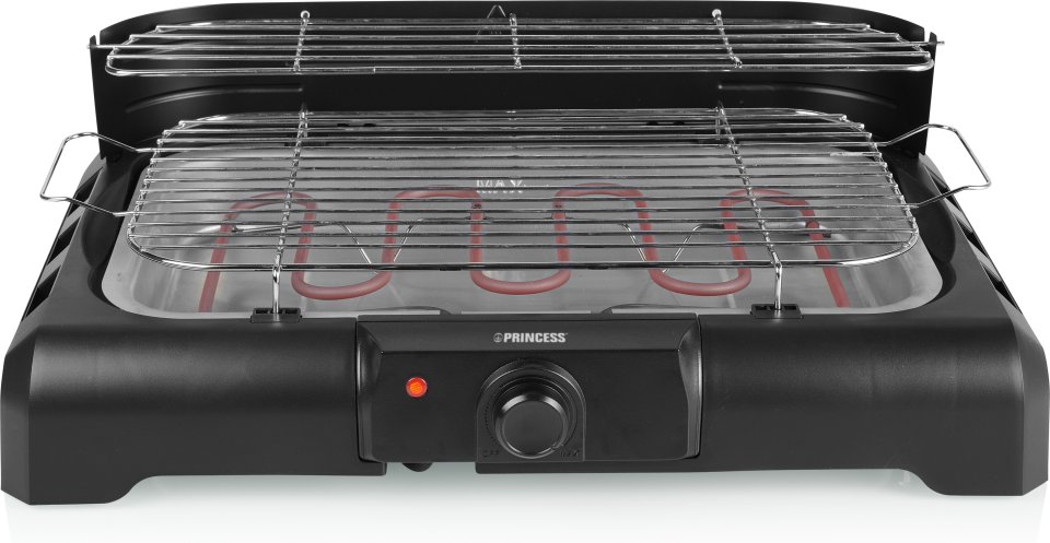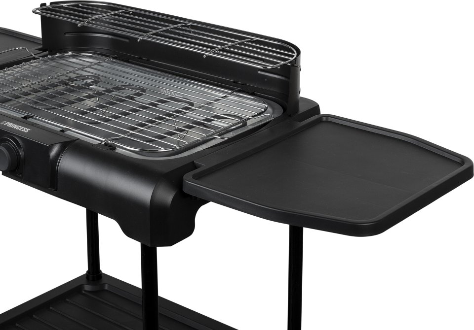 With the included stand, you can use the Princess electric grill as both a tabletop model and a standalone grill. The sturdy stand comes with an extra storage shelf for all your grilling tools, utensils, and marinades. The grill features two different height levels for the grilling racks, allowing you to grill not just meat but also fish and vegetables. Use the upper rack to let larger cuts of meat rest, keeping them warm and juicy while grilling vegetables on the lower rack, so you can serve everything at once.
